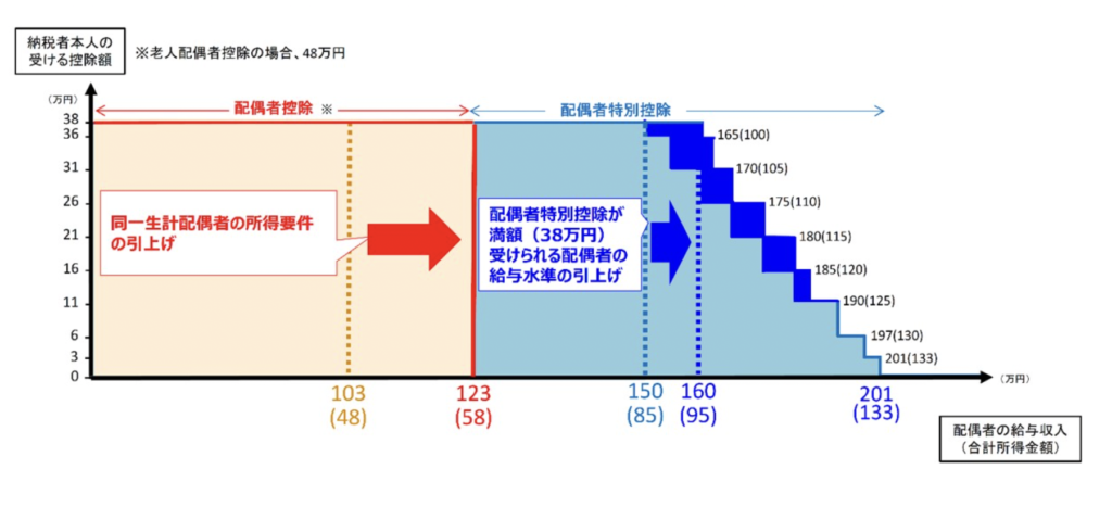 ④【配偶者控除/配偶者特別控除】“満額”が160万円まで(=世帯手取りが逆転しにくい設計)