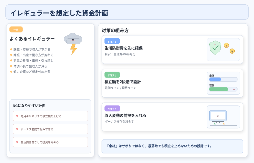 ・必要額が変動することを見据えて生活費とは別で蓄えておく
